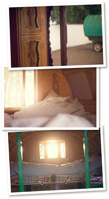 Vad sägs om att somna under sommarhimlen till lövträdens sus i en traditionell, läckert inredd Gypsy Wagon, på mjuka madrasser med fräscha lakan, duntäcken och goa kuddar? Kanske efter en god måltid i vår restaurang och samvaro vid lägereldens sken. Och att sedan få vakna till en härlig frukost med gott kaffe och ett sagolikt dagsfärskt bröd från bygdens berömde bagare.
